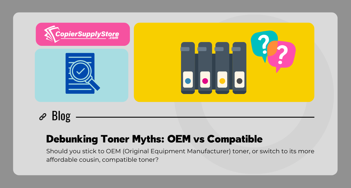 When it comes to replacing your printer toner, the choices can be overwhelming. Should you stick to OEM (Original Equipment Manufacturer) toner, or switch to its more affordable cousin, compatible toner? For years, the office world has been flooded with myths about compatible toner being unreliable, risky, or just plain not worth it. But is there any truth to these claims? Spoiler alert: Not really.
